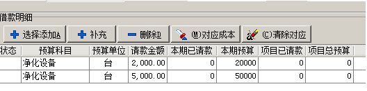 在請款過程中, 如果出現(xiàn)預(yù)算以為的請款,如:運費、裝卸費等,可以利用補充按鈕來進行補充。