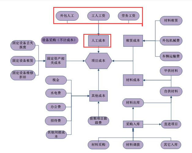 人工成本,可分為員工工資、勞務(wù)工資、分包費(fèi)三個部分。
