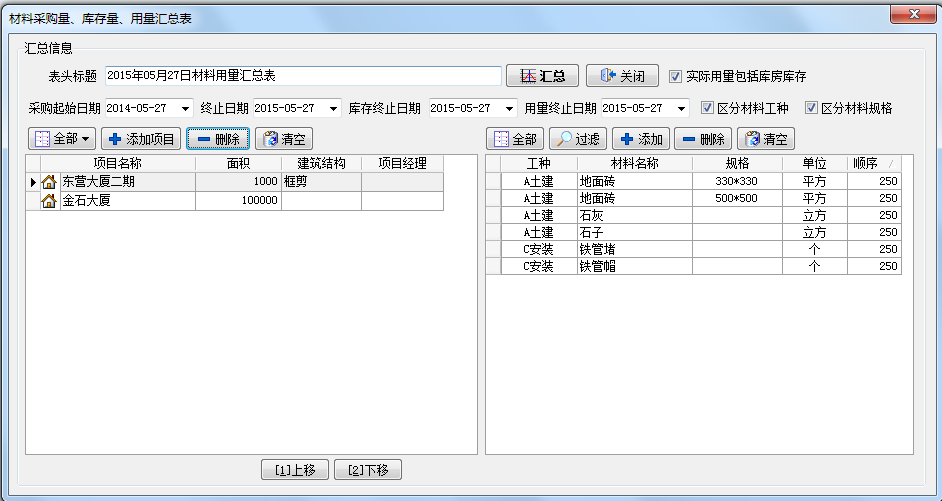 1.5工程項目管理系統(tǒng)中采購庫存及用量匯總表