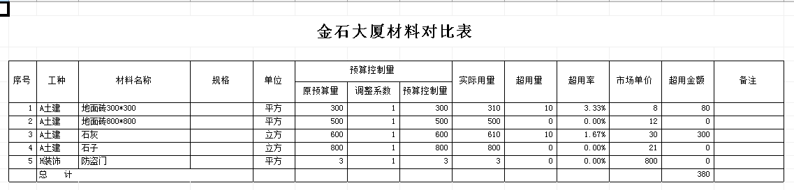 1.4工程項目管理系統(tǒng)中項目材料總量、單平方用量對比表