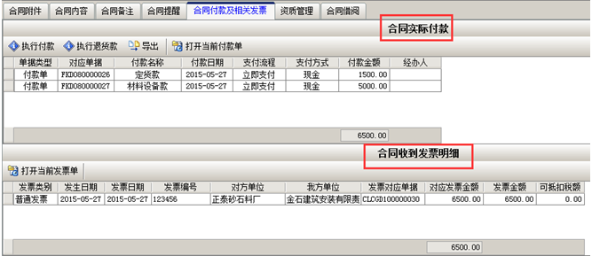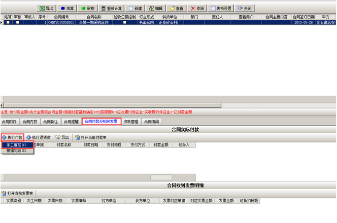 付款及發(fā)票可在“合同付款及相關(guān)發(fā)票”中查詢。如圖: