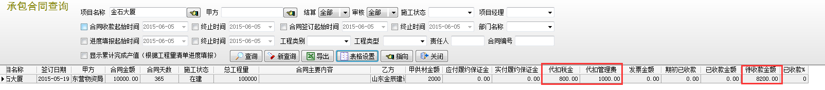 填寫完成【代扣管理費(fèi)稅金】模塊時待收款金額