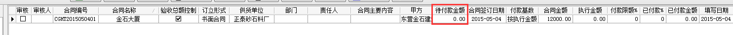 當(dāng)我們選擇執(zhí)行金額時(shí),沒(méi)有驗(yàn)收記錄,待付款金額顯示為零。