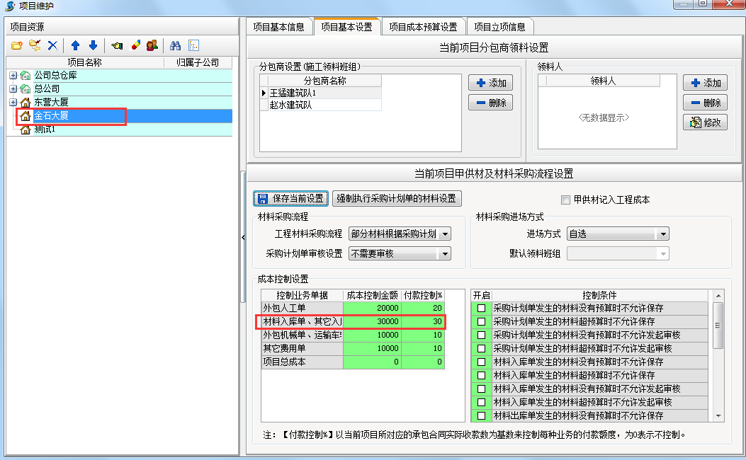 在工程項(xiàng)目管理系統(tǒng)中新建項(xiàng)目時(shí)設(shè)置成本控制金額和付款控制比例。具體設(shè)置方法【工程管理】模塊?【項(xiàng)目維護(hù)】項(xiàng)目基本設(shè)置