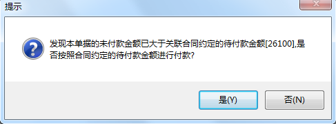 如果選擇是,則生成一個(gè)付款金額為26100的付款申請(qǐng)單。這樣就通過(guò)付款比例實(shí)現(xiàn)了對(duì)付款的控制。
