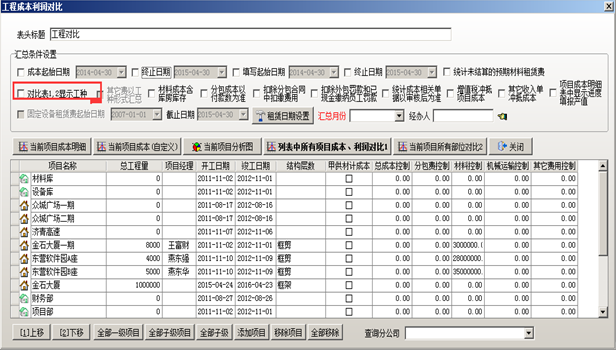 點(diǎn)擊系統(tǒng)的“工程管理”-“工程成本利潤對比”: