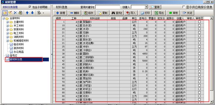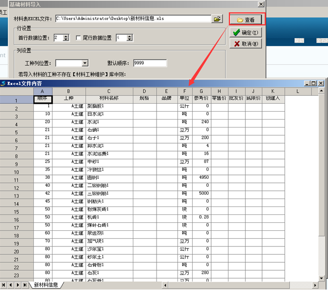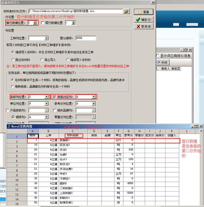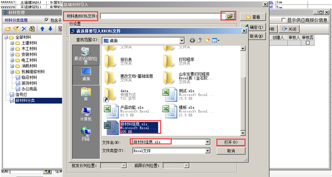 一般在建賬初期,基礎(chǔ)信息比較多,需要將基礎(chǔ)信息錄入到系統(tǒng)中的話工作量比較大??衫门繉?dǎo)入的功能將基礎(chǔ)信息導(dǎo)入到系統(tǒng)中。首先需要講基礎(chǔ)信息整理到Excel表格中,方便導(dǎo)入。以材料信息的導(dǎo)入為例,其他信息的導(dǎo)入可參照。