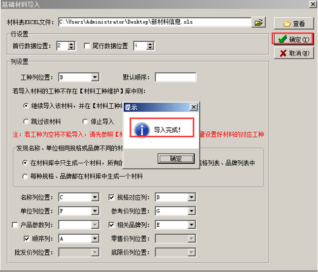 規(guī)則選擇好并且列名對應(yīng)完成之后,則導(dǎo)入信息。導(dǎo)入完成系統(tǒng)給出對應(yīng)提示。如圖: