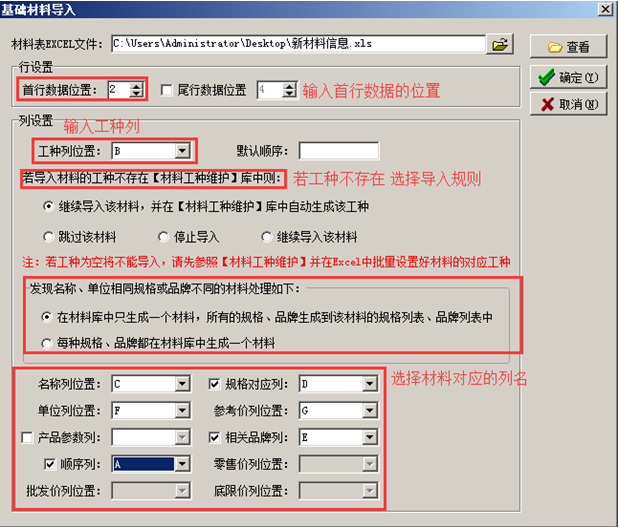 若導(dǎo)入的材料工種不存在,選擇導(dǎo)入規(guī)則;