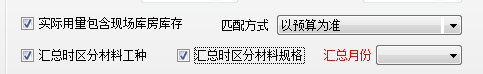 預算單材料名稱為基準的,而且預算單里區(qū)分了工種,所以需要將“匯總時區(qū)分材料工種”打鉤