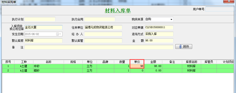 在工程項目管理系統(tǒng)中其中材料采購單中還有超過一年內最高采購價提示。如下圖
