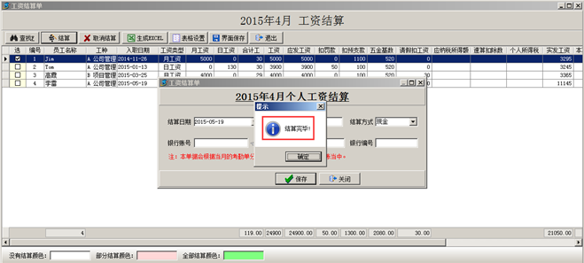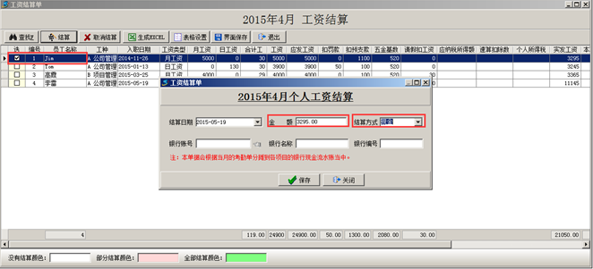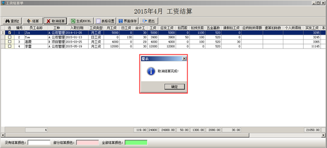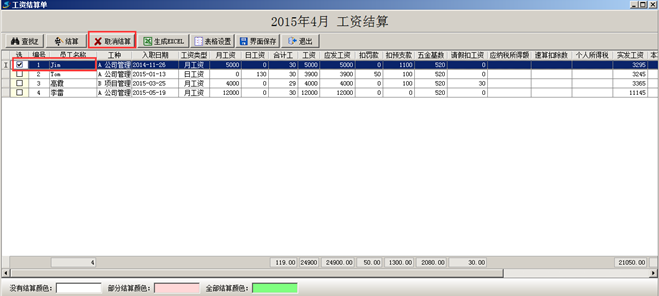 注:如果員工的工資只做了部分結(jié)算,則會(huì)顯示對(duì)應(yīng)的“部分結(jié)算”的顏色。