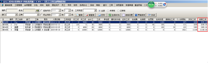 結(jié)算完成之后工程管理軟件中可查詢工資流水,并可查詢分?jǐn)偟礁黜?xiàng)目中的成本。