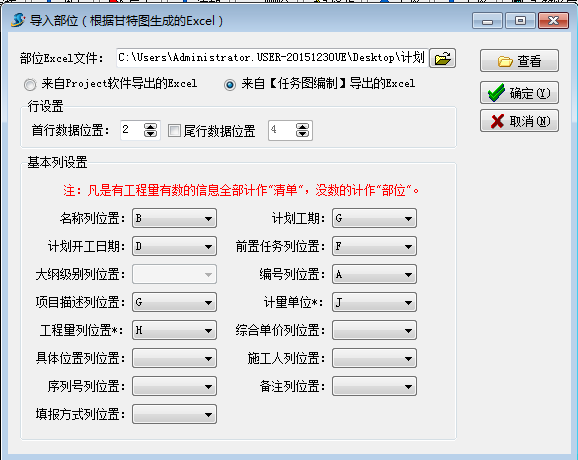 1. 來(lái)自Project軟件導(dǎo)出的excel導(dǎo)入方法。