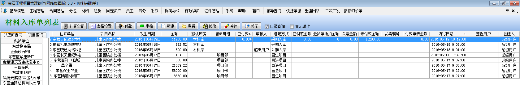 2.在營改增后.以前版本做的單據如何實現價稅分離調整?我們以材料入庫單(即材料采購單)為例,進行演示: