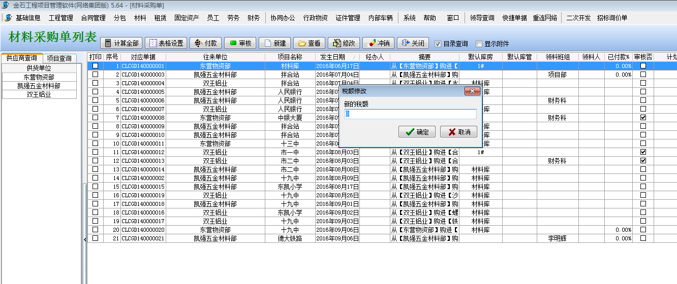 工程項目管理系統(tǒng)為適應“營改增”政策升級到5.4版本以后,如下圖: