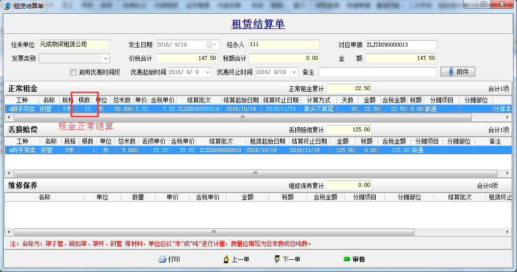 3、在還的時(shí)候發(fā)現(xiàn)其中有一根6米的損耗成5.5米了,把自己的1根6米還給對(duì)方,租金扔按10根6米算。(實(shí)際是把損耗后的5.5米與自己的6米做了對(duì)換,即:歸還給了淄博元成物資租賃公司6米,自己實(shí)際還剩下一根5.5米鋼管)