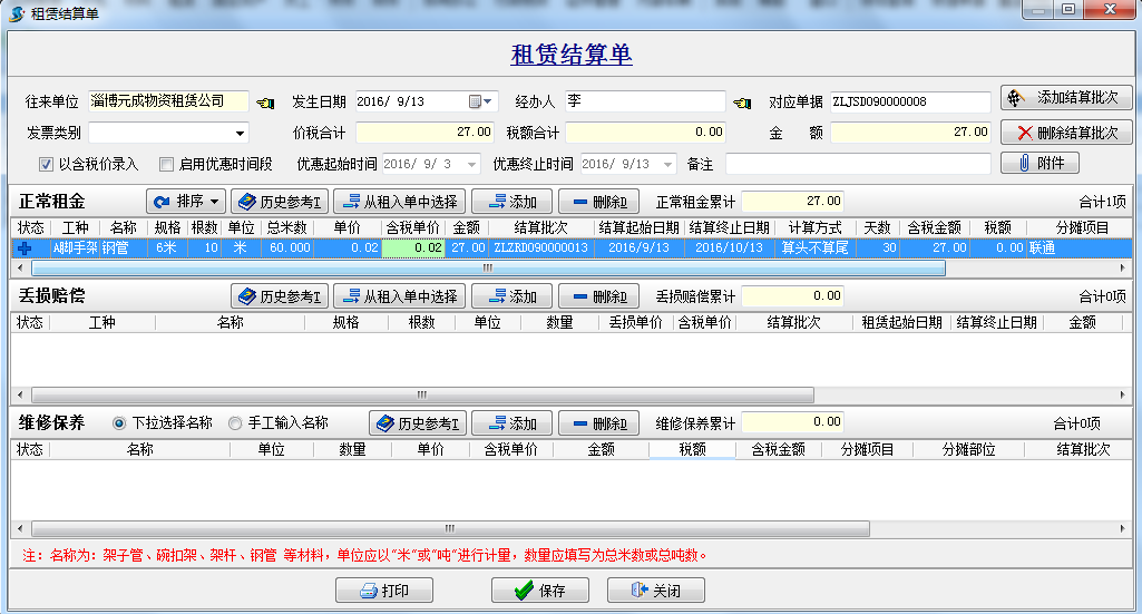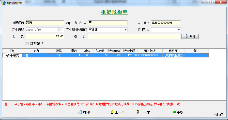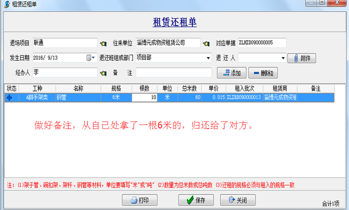 工程項(xiàng)目管理軟件在租賃過程中經(jīng)常會(huì)發(fā)生以下情況:如租賃十根6米的鋼管,使用過程中有一根因?qū)嶋H需求損耗了0.5米 需要給予對(duì)方賠償