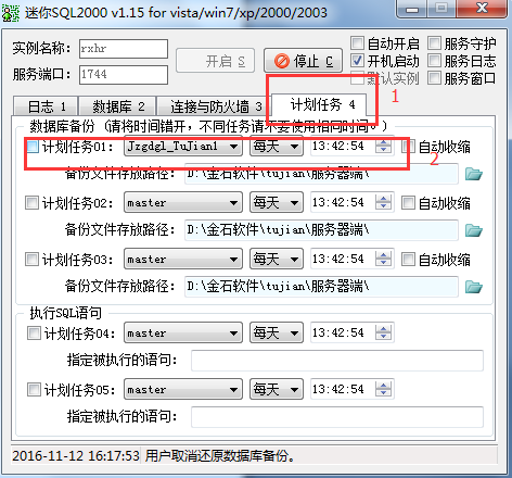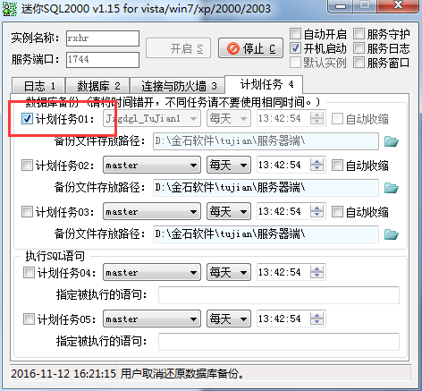 2、自動(dòng)備份:選擇計(jì)劃任務(wù)→添加備份的數(shù)據(jù)庫和日期