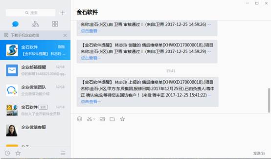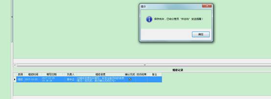 負(fù)責(zé)人維修確認(rèn)完成,保存記錄后會發(fā)送提醒給分管員。此時(shí)分管員會收到提醒,如下圖