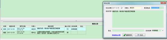 收到提醒后,分管員做客戶回訪,并填寫回訪記錄。如下圖