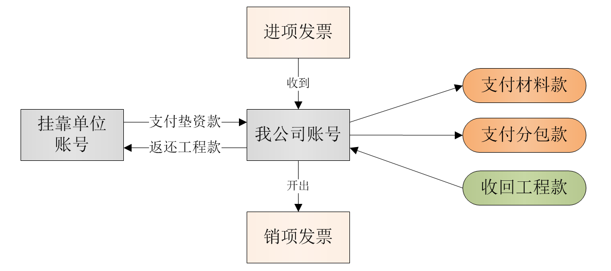 注:但對掛靠單位的流水是沒有發(fā)票,財務人員可在財務軟件中做“其他應收款”、“其它應付款”或“工程借款”、“工程還款”的會計憑證來倒賬。