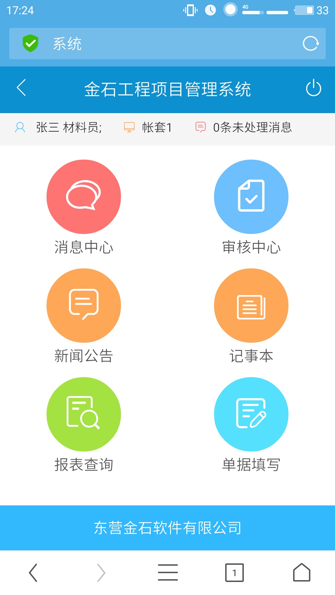(3) Browser端主要應用在移動設備終端,目前已經(jīng)與微信無縫整合,只需安裝微信就可正常使用各項功能,主要用于業(yè)務單據(jù)審核、微信消息提醒、現(xiàn)場進度填報、部分報表資料文檔查詢、部分單據(jù)填寫等。