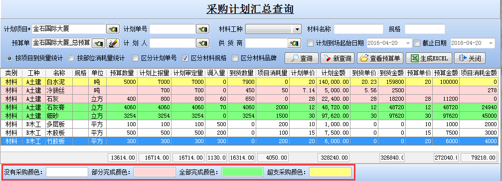 可實時查詢項目的預算量、計劃上報量、計劃審定量、總庫調入量、采購到貨量、項目消耗量,六種數(shù)據(jù)的動態(tài)變化。