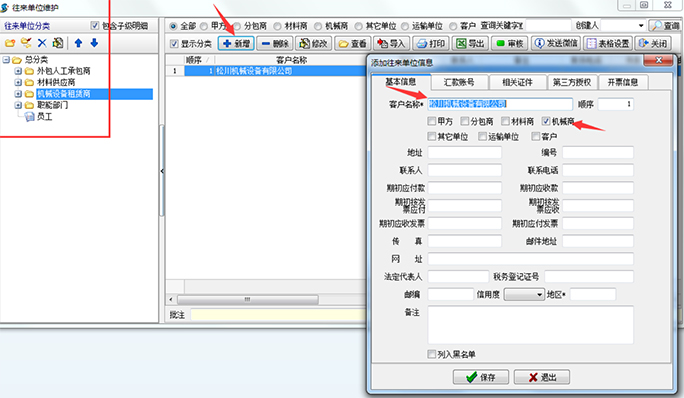 所謂的往來(lái)單位維護(hù),主要將機(jī)械設(shè)備的供貨商信息錄入系統(tǒng),方便以后進(jìn)行維保、二次采購(gòu)等操作。操作界面如下: