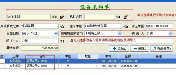 在使用機(jī)械設(shè)備的過(guò)程由于老化、意外事故等情況,需要重新采購(gòu)設(shè)備。那么可以執(zhí)行設(shè)備采購(gòu)合同,設(shè)備的基礎(chǔ)信息可以直接從合同中導(dǎo)入。