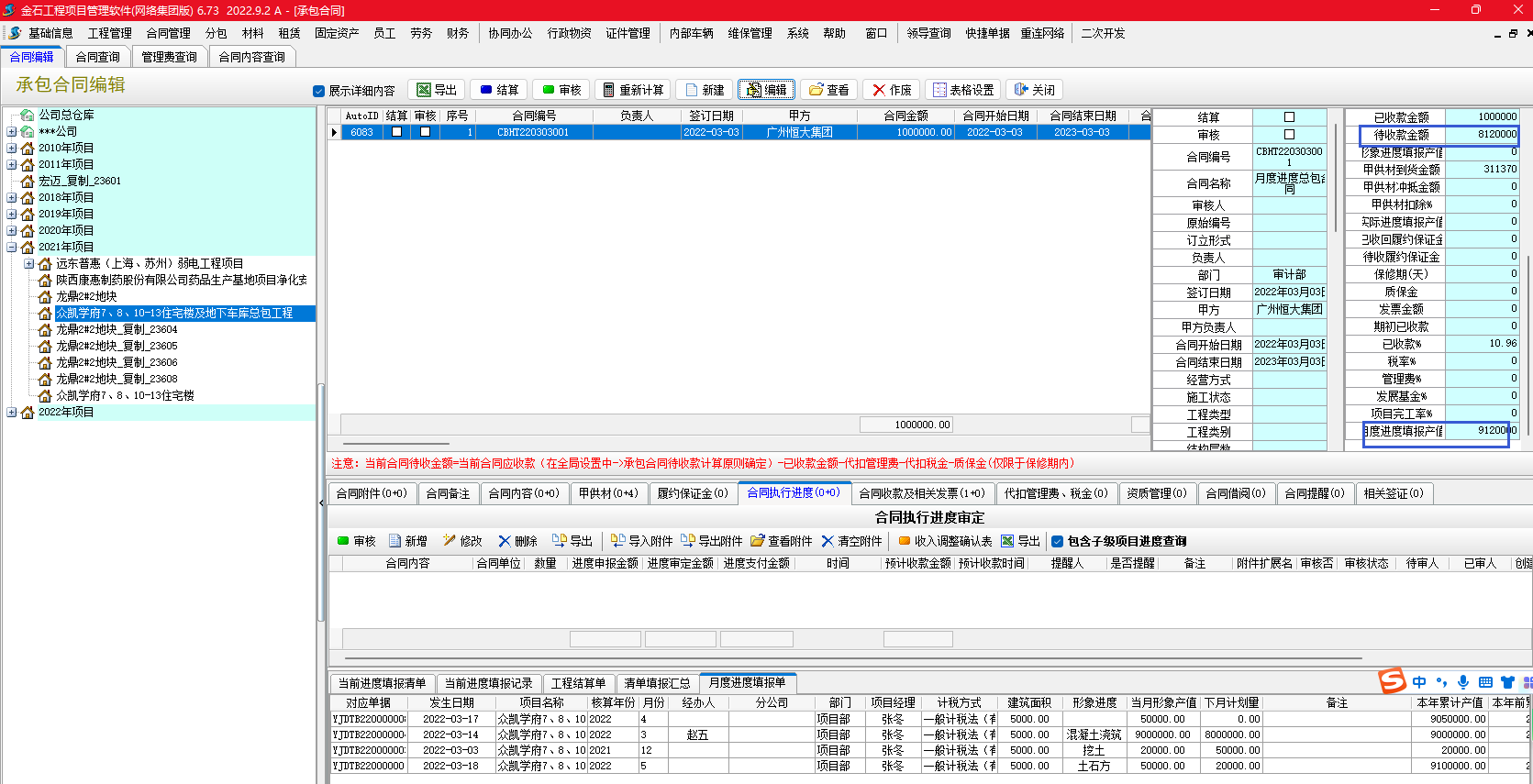 可以根據(jù)承包合同待收款計算原則設(shè)置以月度進(jìn)度填報為準(zhǔn)。