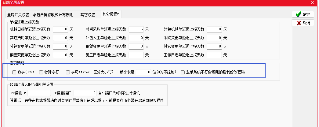 金石工程項(xiàng)目管理軟件可以自定義密碼策略,限制設(shè)置密碼的形式。