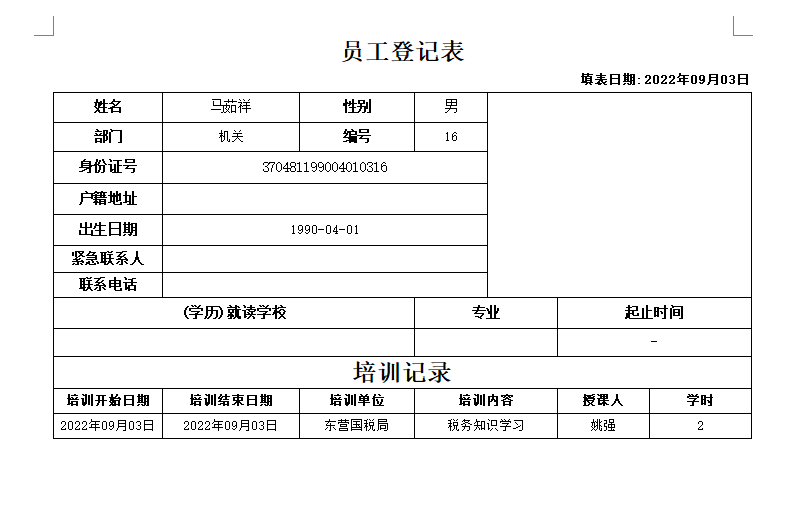 金石工程項(xiàng)目管理軟件可以填寫員工培訓(xùn)記錄,并生成到員工維護(hù)。
