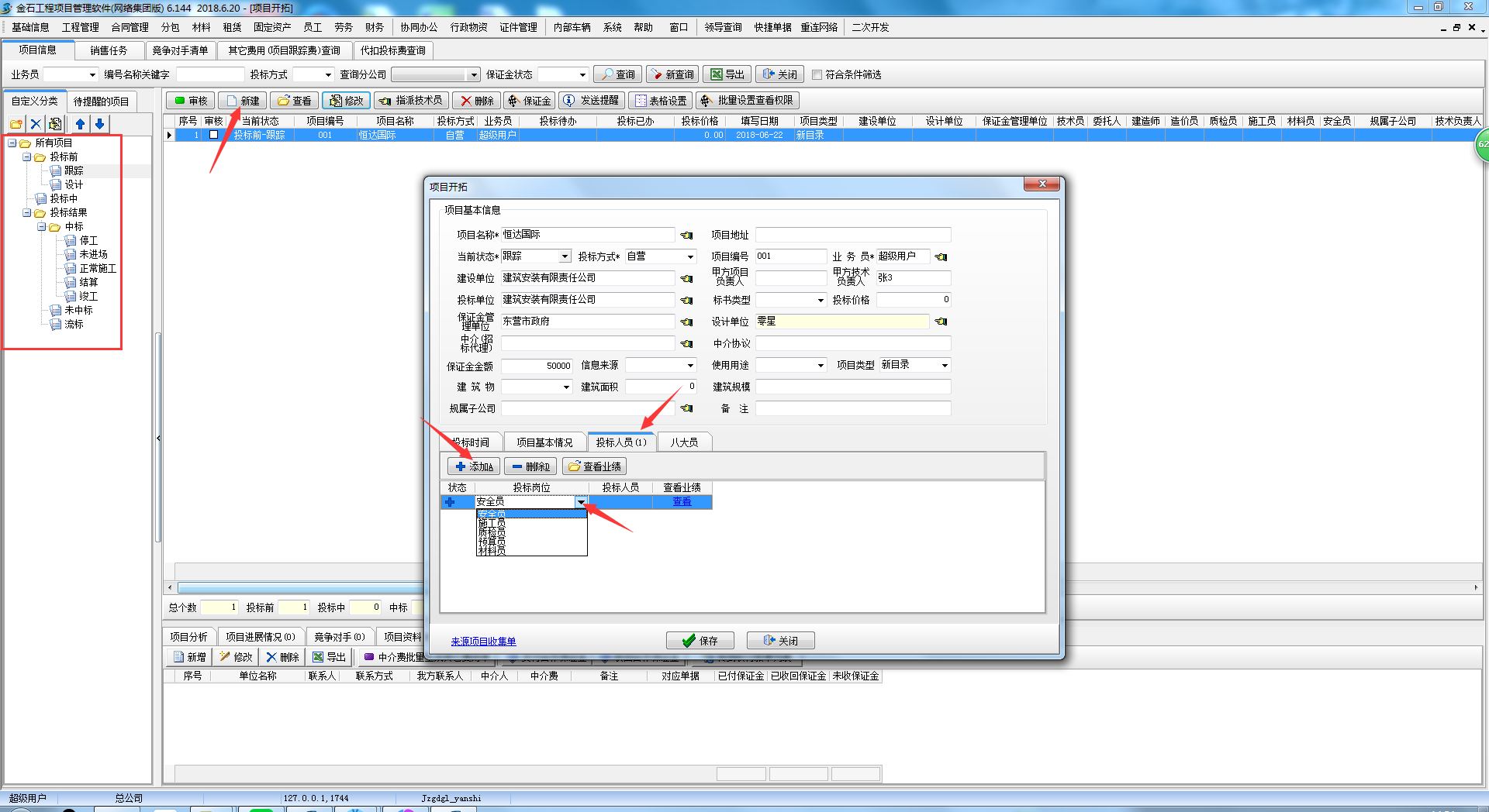 1.項(xiàng)目投標(biāo)崗位及人員維護(hù)