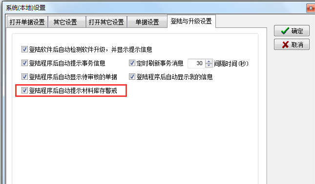 首先,要在【系統(tǒng)維護(hù)】—【系統(tǒng)本機(jī)設(shè)置】—【登錄與升級設(shè)置】中設(shè)置是否登錄彈出提示,如下圖: