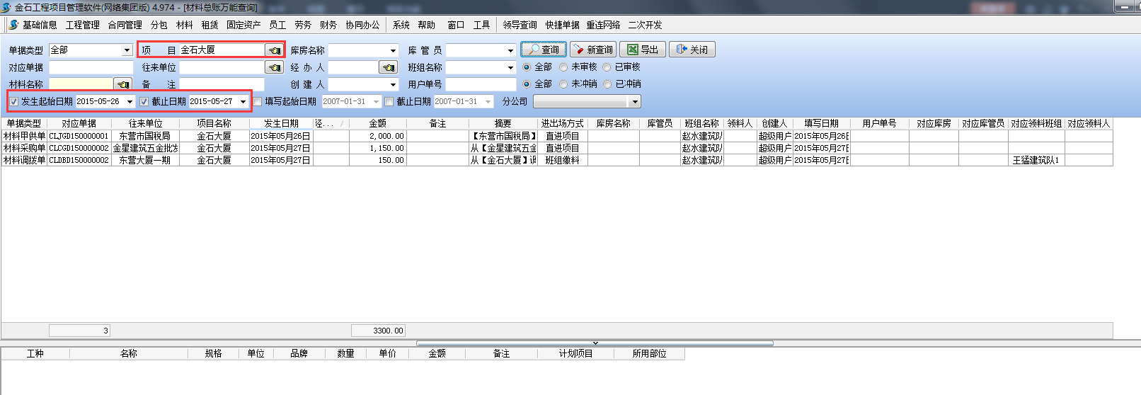 3.1工程項(xiàng)目管理系統(tǒng)中 材料總賬萬能查詢