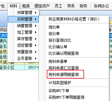 金石工程管理軟件材料管理模塊新增:用料申請(qǐng)明細(xì)查詢