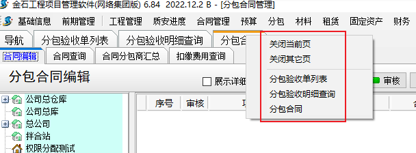 金石工程管理軟件新增導(dǎo)航、所有單據(jù)列表和合同新增選項(xiàng)卡的布局設(shè)置