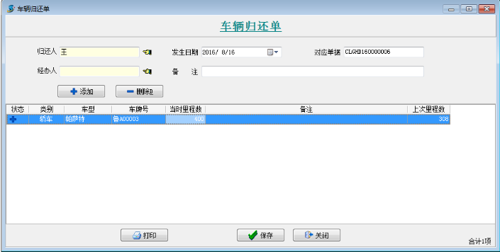 日常車輛借還業(yè)務— 主要包括【車輛借出單】【車輛里程單】【車輛歸還單】