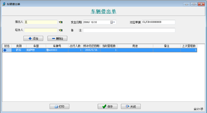 1.工程項目管理軟件—車輛借出單