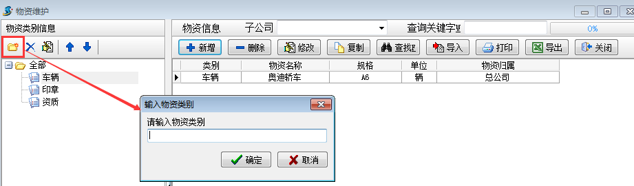 物資類別信息編輯工具欄是用來編輯物資分類。