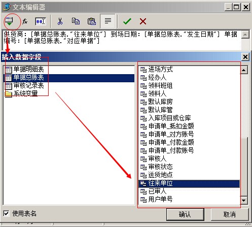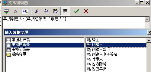 在彈出的表達(dá)式編輯器中,再來(lái)選擇具體的字段。我們選擇單據(jù)明細(xì)表中的金額字段,那么統(tǒng)計(jì)的就是所有明細(xì)項(xiàng)的總金額。如下面幾張圖所示:
