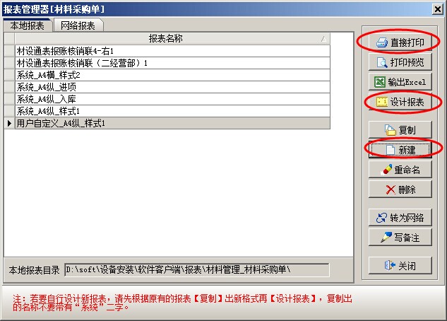 1. 鼠標(biāo)單擊打印按鈕,彈出報(bào)表管理器,如需打印,選擇列表中已設(shè)計(jì)好的報(bào)表【點(diǎn)直接打印】按鈕即可。如需修改報(bào)表,選中報(bào)表后點(diǎn)【設(shè)計(jì)報(bào)表】按鈕即可。