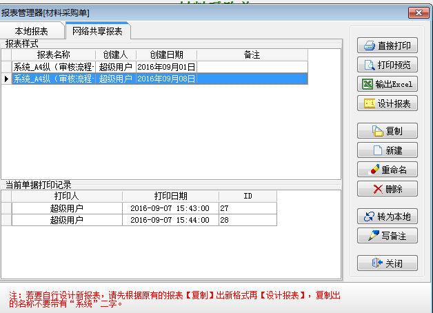 (1) 開(kāi)啟【打印次數(shù)顯示】的單據(jù)報(bào)表設(shè)計(jì)只能由“超級(jí)用戶(hù)”來(lái)管理。(2) 在單據(jù)的【打印報(bào)表】界面下點(diǎn)擊【打印】后,無(wú)論是否打印成功,打印次數(shù)將自動(dòng)加1。