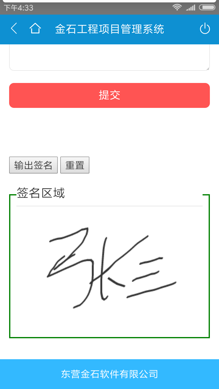 在項(xiàng)目施工過(guò)程中,現(xiàn)場(chǎng)審核單據(jù)需要打印后才能手動(dòng)簽字,效率比較低,為此金石工程項(xiàng)目管理軟件開(kāi)發(fā)了審核過(guò)程中使用手機(jī)電子簽名。具體的功能實(shí)現(xiàn)如下:
