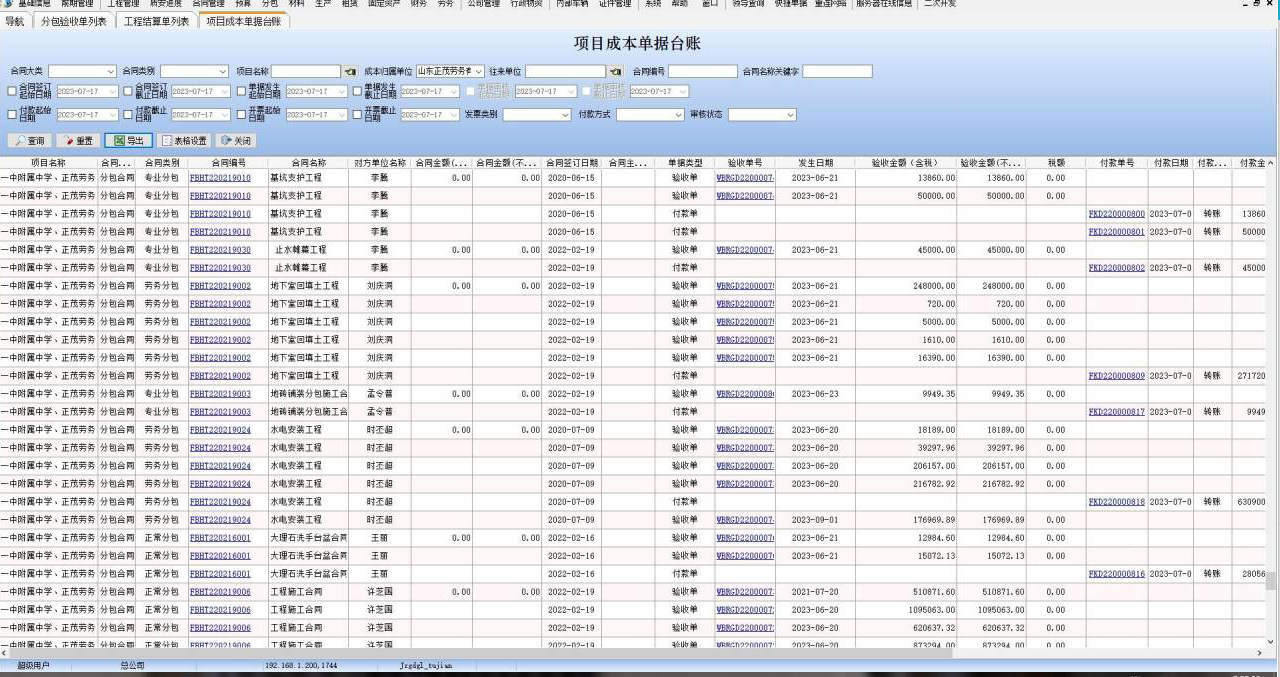 1、項目成本單據(jù)臺賬表金額類字段增加腳標(biāo)匯總。