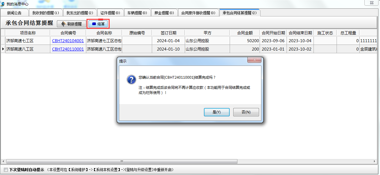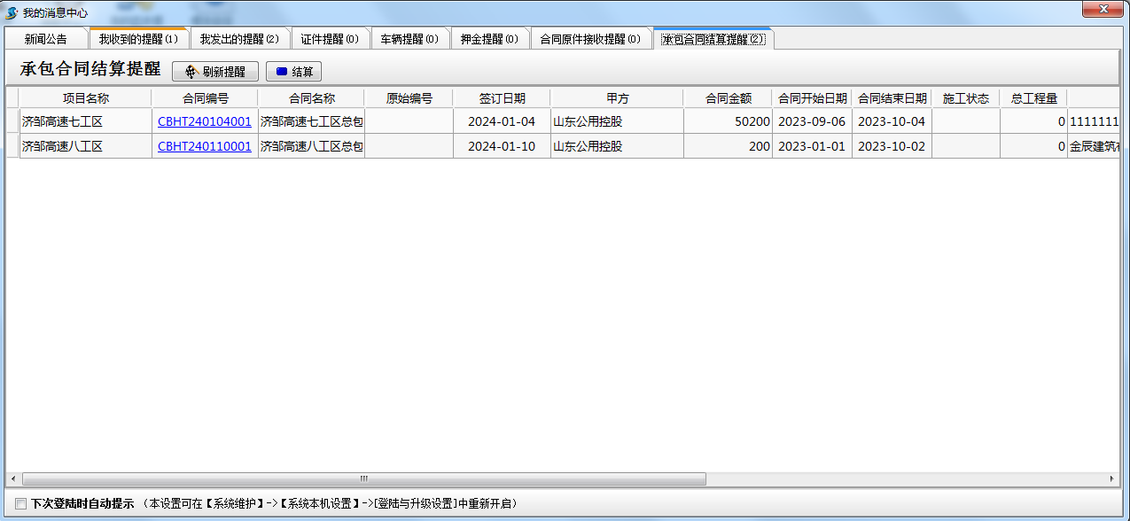 系統(tǒng)新增項目結算提醒功能,可以設置固定提醒人,按照合同約定時間項目到期后,系統(tǒng)自動提醒。