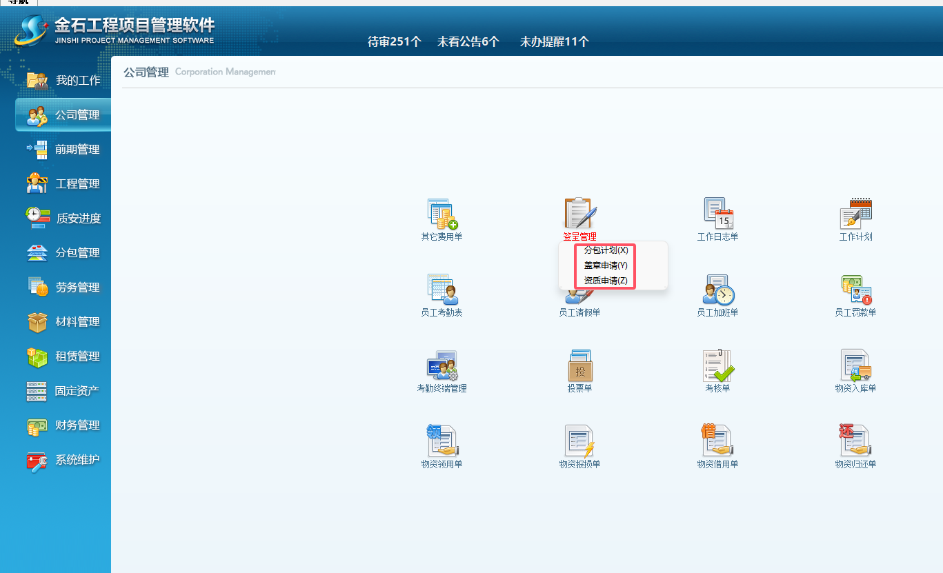 打開簽呈模塊時可以按照分類進入,查看對應分類的簽呈。