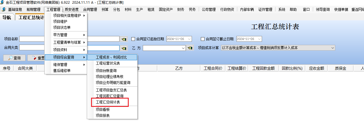 金石軟件更新——新增工程匯總統(tǒng)計(jì)表