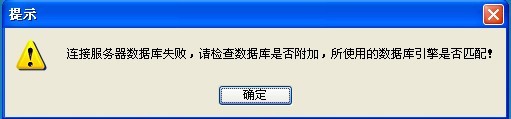 如果彈出錯提示:“連接服務器數(shù)據(jù)庫失敗,請檢查數(shù)據(jù)庫是否附加,所使用的數(shù)據(jù)庫引擎是否匹配”